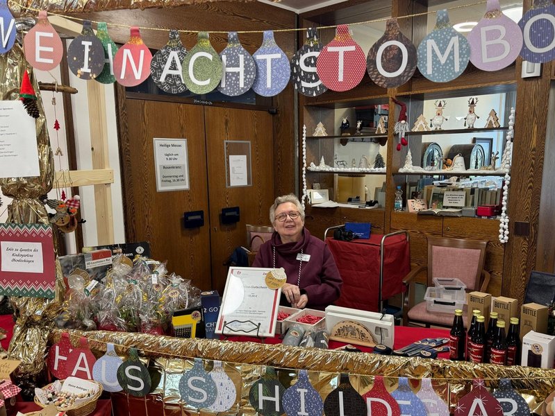 Auch der Stand unseres Hauses wurde (fast) leergekauft, hier wurden wieder allerlei hübsche Dinge angeboten, die unsere Betreuungskräfte über das Jahr unter Mitwirkung unserer Bewohnerinnen und Bewohner gebastelt haben. Neu hinzu kam dann noch eine Tombola, die ebenfalls von unserer Betreuung organisiert, sage und schreibe 1.000 tolle Preise aus Spenden verschiedenster Firmen und Institutionen bereithielt. Der Erlös aus dem Verkauf unserer Bastelarbeiten und der Tombola wird zu gleichen Teilen dem katholischen und gemeindeeigenen Kindergarten in Oberdischingen zufließen, sicherlich wird es hier das ein oder andere Herzensprojekt geben, das man mit dem Geld finanzieren kann. Da wir unseren Verkaufsstand noch bis zum Drei-Königs-Tag geöffnet lassen, freuen wir uns natürlich, wenn sich die Spendensumme noch weiter erhöht.