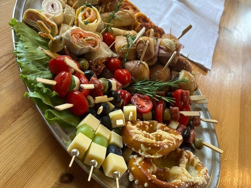 Bewohnende und Mitarbeitende hatten die Tische im Speisesaal liebevoll vorbereitet. Bei Fingerfood und Getränken kamen die Gäste schnell miteinander ins Gespräch. Nach einer Begrüßung und einem kurzen Rückblick auf die Entwicklung von Schloss Tannegg wurde das Konzept der Besonderen Wohnform der Sozialen Teilhabe vorgestellt und ein Ausblick in die Zukunft gegeben.