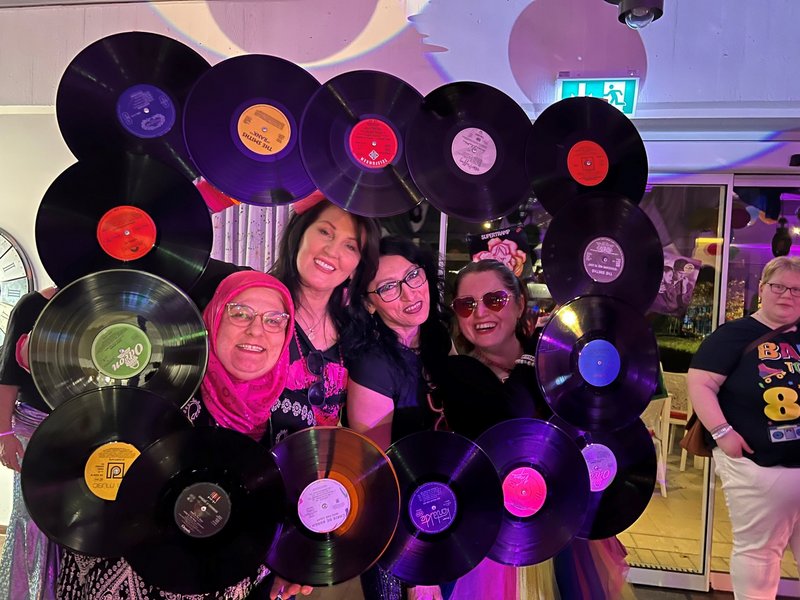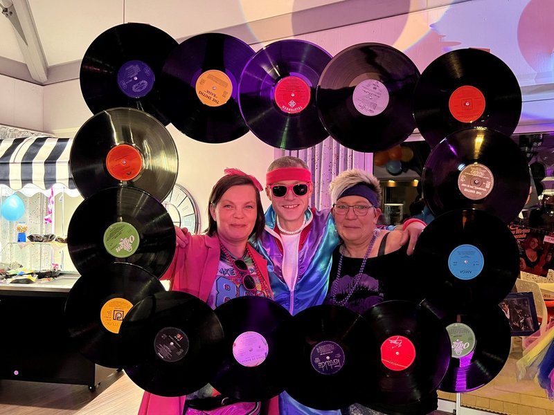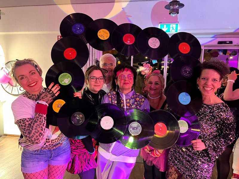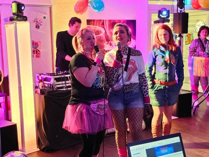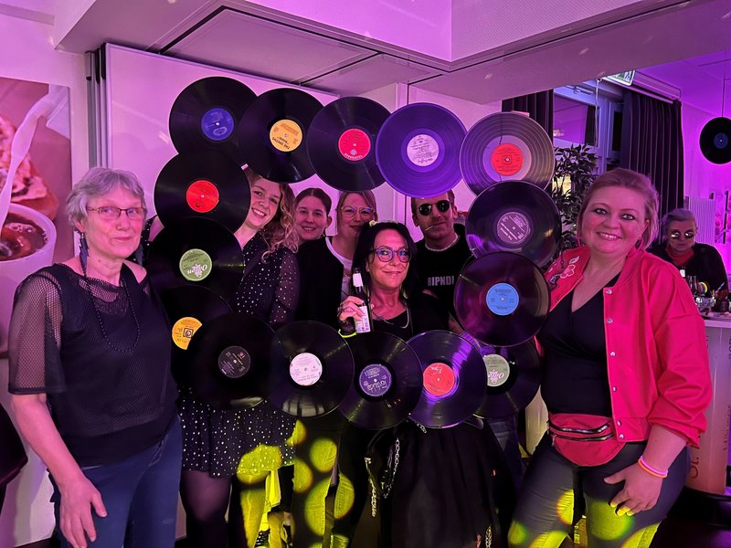 Die Cafeteria und die Aula verwandelten sich für einen Abend in eine Disco ganz im Stil der 80er Jahre. Unsere Mitarbeiterinnen der Hauswirtschaft zauberten ein leckeres Buffett mit Hawaiitoast, Spargelröllchen, Mini-Mettigeln und vielen weiteren typischen Köstlichkeiten aus den wilden 80er Jahren. DJ Alex brachte die Gäste in Schwung und mit gelungenen Karaoke-Einlagen zum Singen. Die Kleidung und Assessoires der Gäste - passend zum Motto - sorgten für viel Gesprächsstoff und großen Spaß.