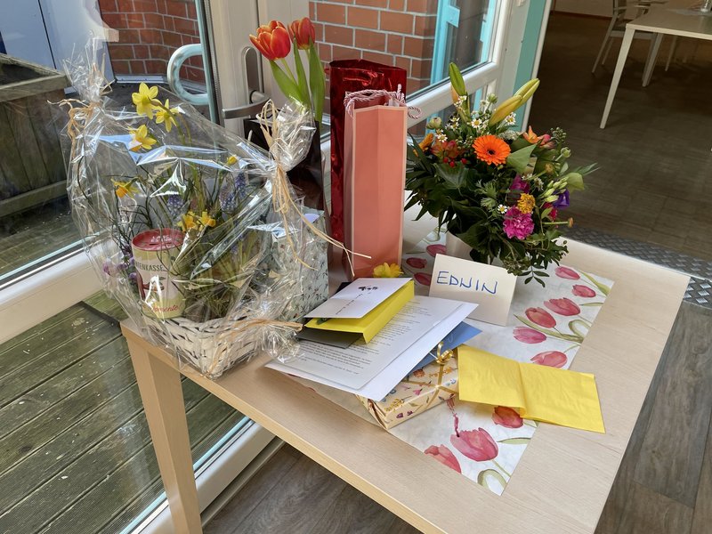 Bei der liebevollen Verabschiedungsfeier dankte Einrichtungsleiter Marco Sievert Edwin Nickel-Buchheit herzlich für sein engagiertes, langjähriges Wirken im Haus St. Anna. Auch Michael Mühlthaler, Leiter des Sozialdienstes, sowie Frau Hans, jahrelange externe Beraterin des Bewohnerbeirates, lobten Edwin Nickel-Buchheit für seine zugewandte Art und sein professionelles Engagement.