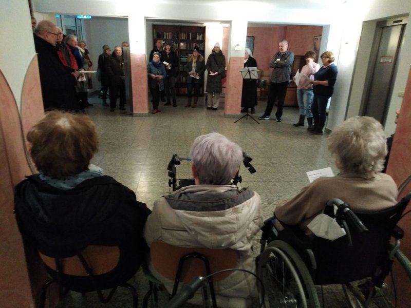 Gemeinsam mit den Bewohnerinnen und Bewohnern wurden weihnachtliche Lieder gesungen und zur Stärkung gab es Glühwein.