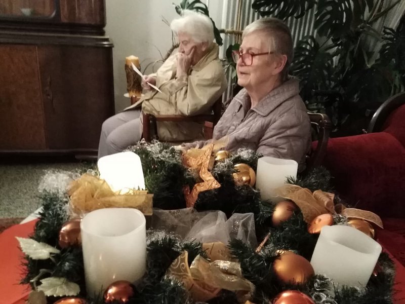 Aus der Gemeinde sind viele Schaulustige zusammen gekommen um das geschmückte Fenster im Haus St. Michael zu besichtigen. Die Ordensschwestern, Pfarrer Vogel und Betreuungsassistent/-innen aus dem Haus St. Michael haben Geschichten und Gedichte vorgelesen.