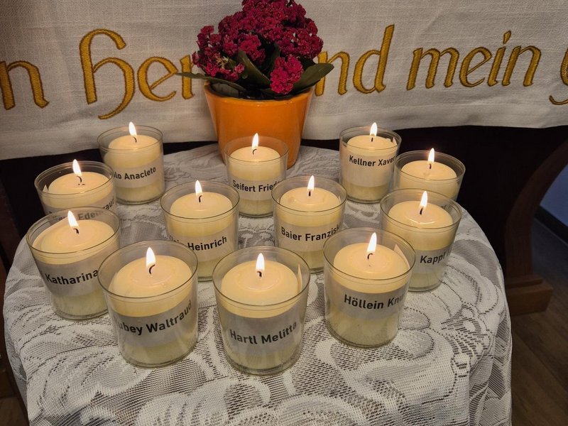 Der Höhepunkt der Feier war das feierliche Totengedenken. Bei der Verlesung der Namen unserer verstorbenen Bewohnerinnen und Bewohner wurde für jede/-n Einzelne/-n eine Kerze entzündet. Dieses Ritual schuf einen Moment der stillen Verbundenheit und zeigte, dass die Erinnerung an sie in unserer Gemeinschaft lebendig bleibt. Wir danken Pater Walter Orth für die würdevolle Gestaltung dieser Feier und allen, die durch ihre Teilnahme und ihr stilles Gebet dazu beigetragen haben, diesen Tag zu einem tröstlichen und besinnlichen Ereignis zu machen. Herr, gib allen Verstorbenen die ewige Ruhe. Wir sind dankbar für die Zeit, die wir mit ihnen verbringen durften, und halten ihr Andenken in Ehren.
