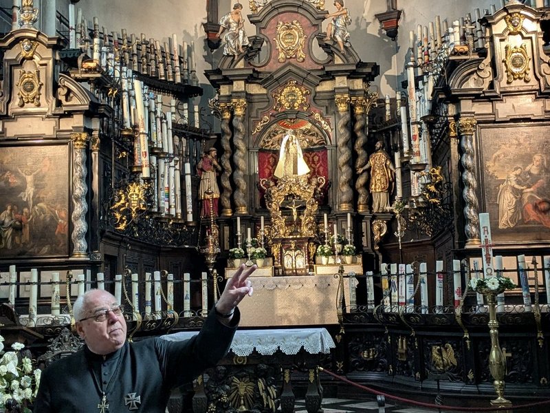 Nach einem gemeinsamen Mittagessen in einer gemütlichen Gaststätte führte uns Frater Karl durch Kevelaer. Er zeigte uns die Basilika, zahlreiche Marienkapellen, eine prunkvolle orthodoxe Kapelle und erzählte an der Gnadenkapelle die Geschichte des Ortes.
