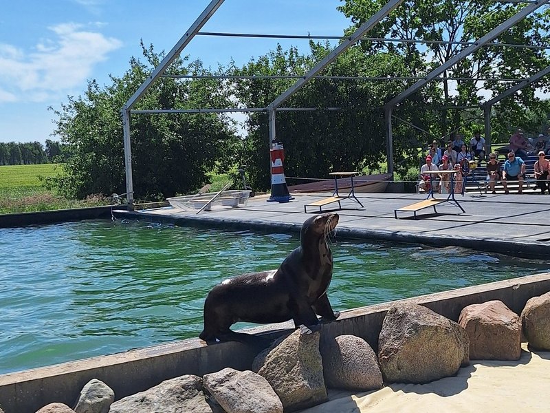 Gemeinsam haben wir dann eine Mittagspause bei Currywurst und Pommes eingelegt und am Nachmittag brachten uns die beiden Seelöwen mit ihrer Show zum Lachen. Die beiden haben sogar schon an der TV-Sendung „DSDS“ teilgenommen.