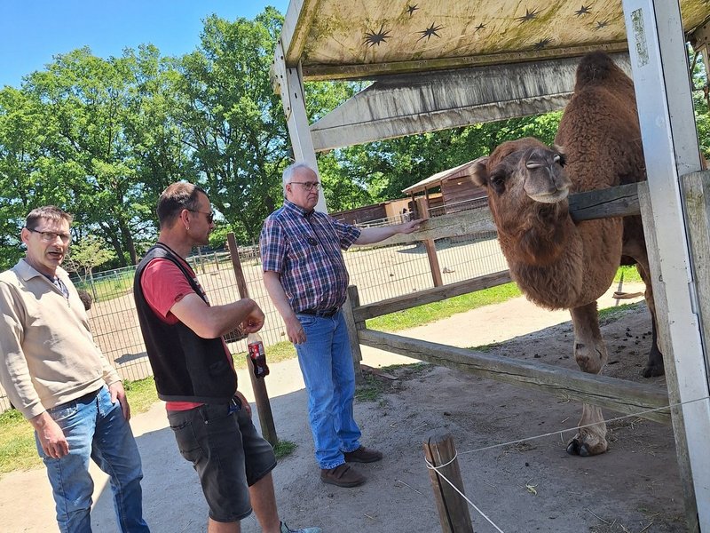 Auf dem Gelände des Elefantenhofs, den es seit 23 Jahren gibt, hatten unserer Bewohner/-innen die Gelegenheit, auch die anderen Tiere zu streicheln und zu füttern. Bei den Kamelen angekommen entdeckten wir ein sieben Wochen altes Kamelbaby.