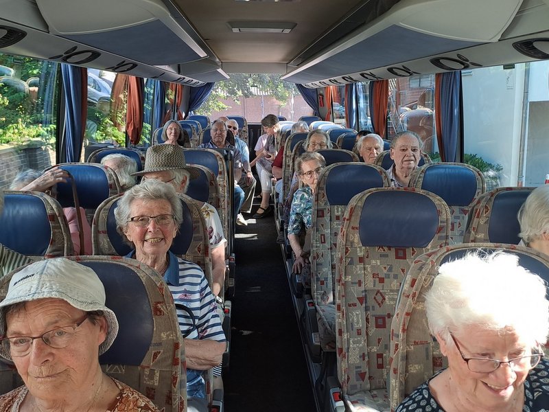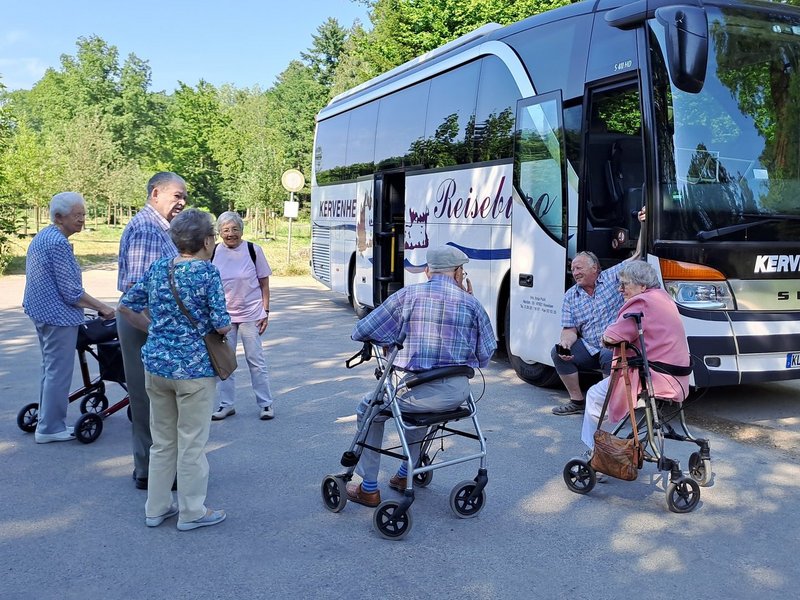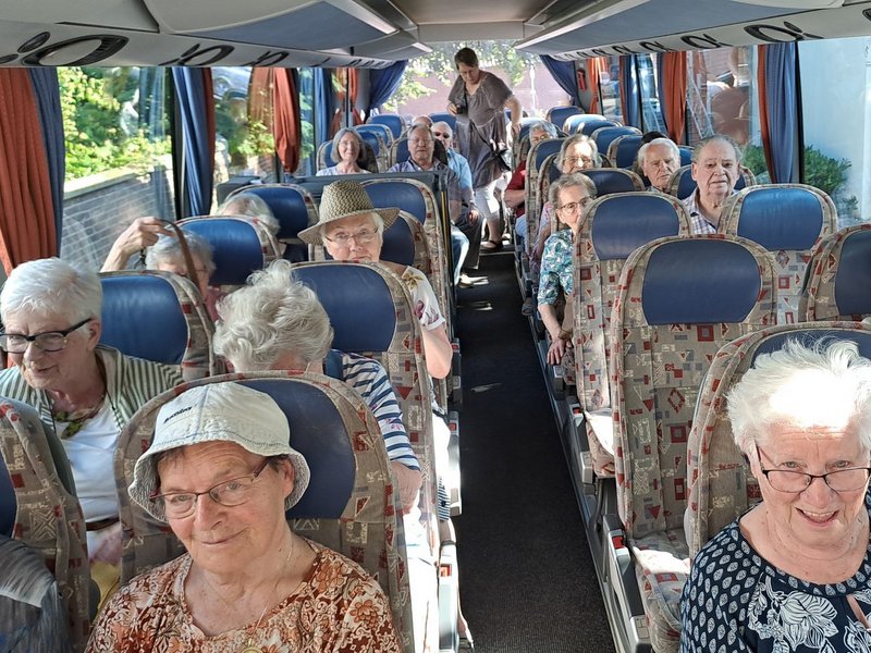 Trotz Hitze ein Vergnügen im voll klimatisierten Bus der Niederrheintour für die Bewohner/-innen des Wohnstiftes St. Marien als Teil des Programmes zum 30jährigem Jubiläum.