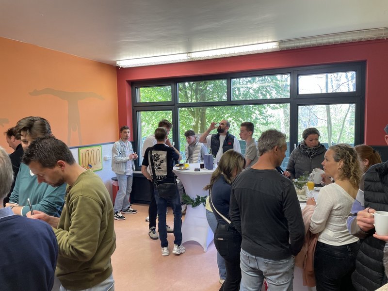 Am letzten Freitag war bei uns richtig was los: Wir haben unsere Azubis gefeiert – und das mit einer bunten Party, die sich sehen lassen konnte! In den vergangenen fünf Wochen haben unsere kreativen niederländischen Maler-Auszubildenden ordentlich den Pinsel geschwungen und unseren Tagesstrukturbereich in ein echtes Schmuckstück verwandelt.