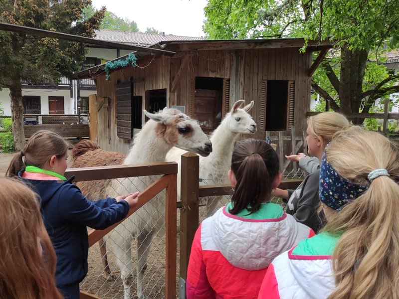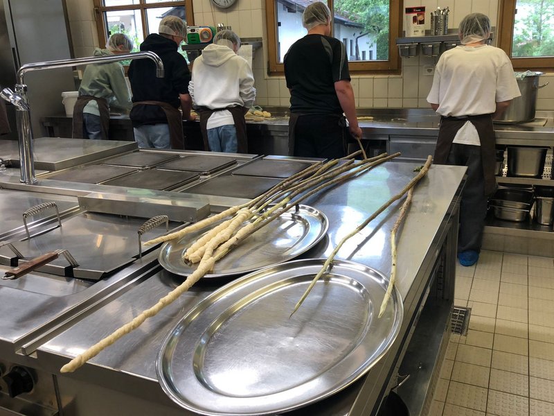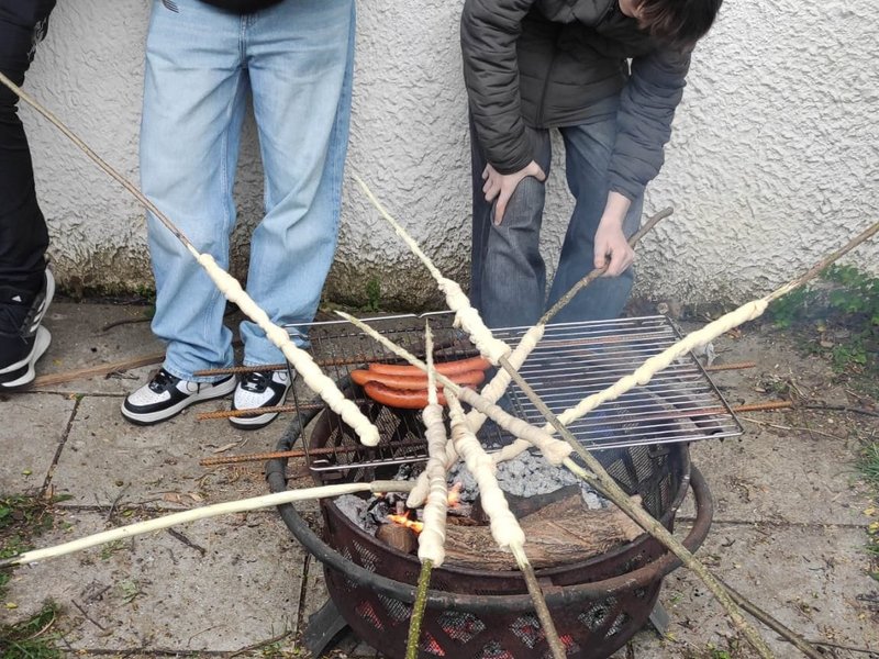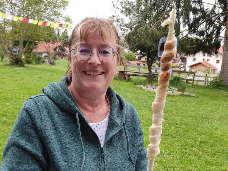 Auf Initiative unserer Arbeitsanleiterin aus dem Bereich Garten/Tierpflege, Monika Gruber, durften wir im Mai eine Firmgruppe aus Bad Feilnbach begrüßen. Ein Teil unserer Bewohnerinnen und Bewohner zeigte sich sehr engagiert, offen und zugänglich, den jungen Menschen einen Eindruck von unserem schönen Haus mit Garten und Tieren und auch einen Einblick in das Leben in der besonderen Wohnform zu geben. Unsere Bewohner/-innen und Karin Gruber - Küchenkraft im Haus - haben sich extra eine Aktion - gemeinsam mit den jungen Menschen - überlegt. Es gab eine Haus- und Gartenführung und anschließend ein gemeinsames Stockbrot- und Würstchen-Grillen. Die Spieße für das Brot wurden selbstverständlich selbst geschnitzt.