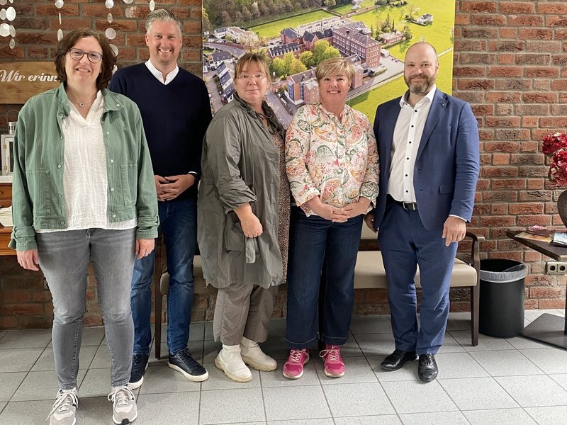 Besuch im Haus St. Raphael Aachen: Dr. Ziemons (Leiter Dezernat für Soziales, Gesundheit und Digitalisierung der StädteRegion Aachen), die Leiterin für das Amt Soziales und Senioren Frau Hirtz sowie Frau Rüter, die das Amt für Inklusion und Sozialplanung verantwortet, waren bei uns. Gemeinsam mit unserer Quartiersmanagerin Frau Umbach wurden Möglichkeiten einer weiteren Zusammenarbeit erörtert und dabei sind wir auf viele spannende Projekte gestoßen, die wir angehen möchten.