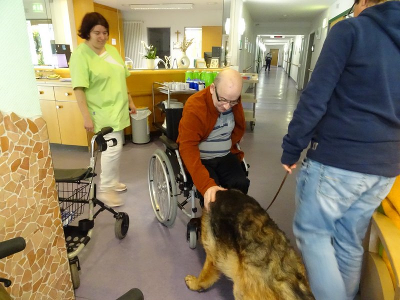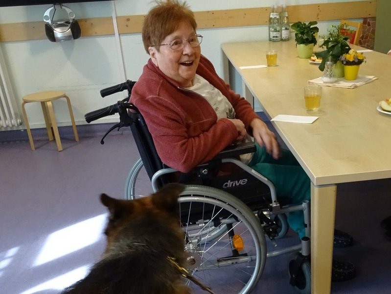 Große Freude in unserem Haus! Unsere Bewohnerinnen und Bewohner genießen den Besuch von Schäferhund Merlin immer sehr. Egal ob streicheln, schnüffeln, spielen: Für die Seniorinnen und Senioren ist die Zeit mit dem liebevollen Vierbeiner immer besonders schön.