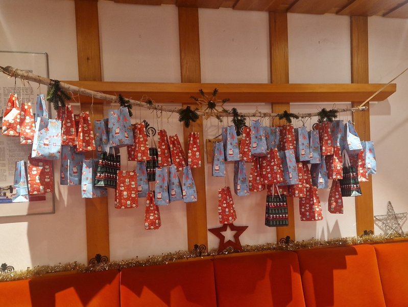 Nun kann der Advent kommen - unser Adventskalender ist prall und liebevoll präpariert, bereit um unseren Bewohner/-innen eine kleine Freude zu bereiten und durch kleine Geschenke auf das Weihnachtsfest vorzubereiten.