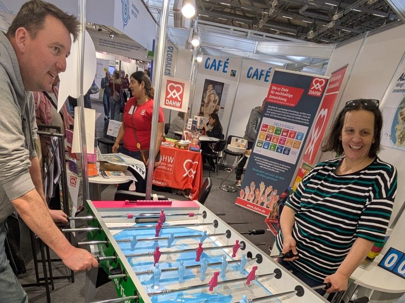 Auch die spielerischen Angebote auf der Messe haben wichtige Themen sichtbar gemacht. Beim „unfairen Kicker“ zeigte sich, wie sehr unterschiedliche Ressourcen den Ausgang beeinflussen können. Obwohl spielerisches Können vorhanden war, entschieden letztlich die ungleichen Ausgangsbedingungen über den Sieg – ein kleines Spiel, das sehr anschaulich zeigt, wie soziale Ungleichheit Chancen beeinflussen kann.