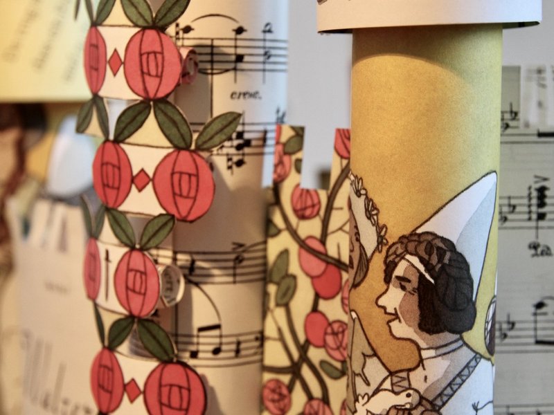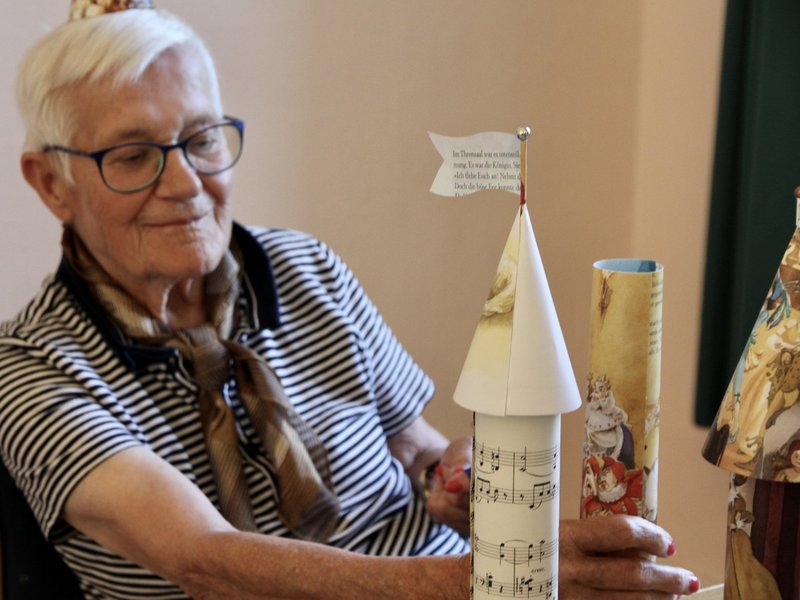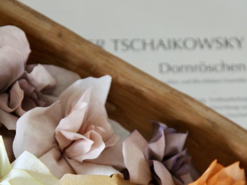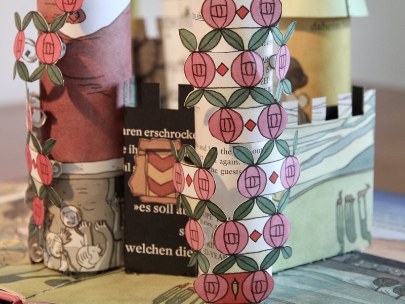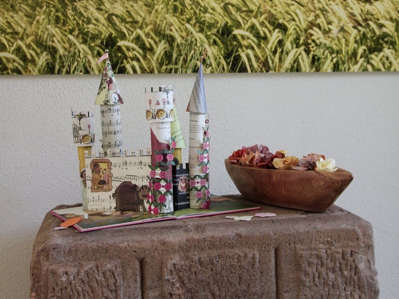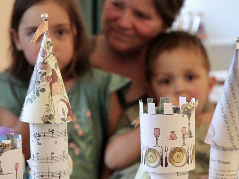 Nein, wir haben nicht geschlafen, wir haben uns in den Wochen vor Pfingsten intensiv mit diesem schönen alten Märchen beschäftigt. In Gesprächen, Lesungen des Originaltextes, der Ballettversion, verschiedenen tiefgründigen und sehr interessanten Interpretationen, die ganz neue Blickwinkel eröffneten - und natürlich beim Basteln. Zuerst haben wir aus Kaffeefiltern zauberhafte Rosen hergestellt, dann alte Märchenbücher in einzigartige Dornröschenschlösser verwandelt. Auch die jüngeren Besucher waren fasziniert und halfen tatkräftig mit.