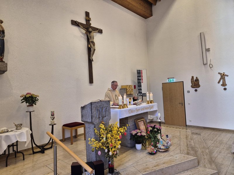 Der Karfreitag stand im Zeichen des Innehaltens. Gemeinsam beteten wir die Kreuzwegsandacht, die von Pater Walter Orth (OT) geleitet wurde. Mit meditativen Texten begleiteten wir den Leidensweg Christi. Zum Abschluss spendete Pater Walter den Segen, der den Anwesenden in der Stille dieses ernsten Tages Trost und Zuversicht schenkte.