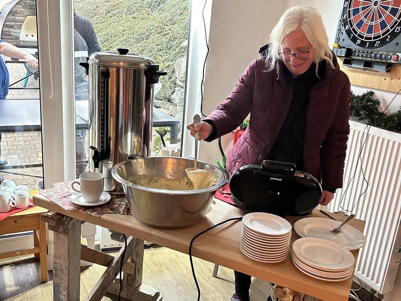 Unsere Weihnachtsfeier bescherte uns einen schönen Nachmittag mit kulinarischen Köstlichkeiten. Es gab Suppe aus dem Hexenkessel, Pizzabrot aus unserem Pizzaofen sowie Waffeln und Plätzchen.