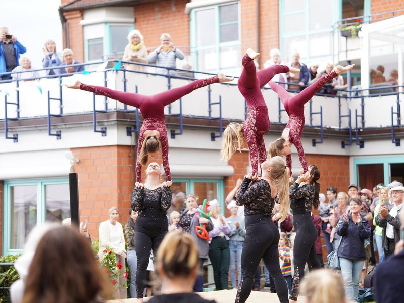 Ein weiterer Höhepunkt: Die Trachtengruppe aus Laboe, die ihren eigenen Musiker samt Schifferklavier mitbrachte. Der Veranstaltungssaal war mit interessierten Bewohner/-innen gut besucht und die traditionelle sowie beschwingte musikalische Darbietung, die durch verschiedene Tänze der Gruppe vorgeführt wurde, kam sehr gut an. Wie es zu den einzelnen Trachtenelementen aus der Region der Probstei kam, erklärte die Vereinsleiterin zwischendurch.
