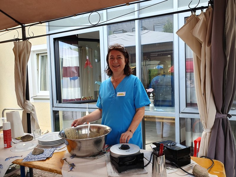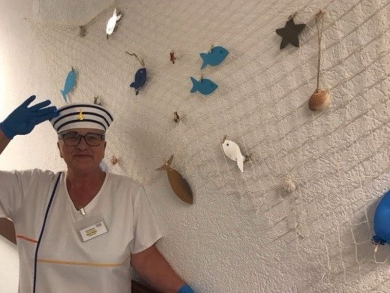 Zum Einstieg in die Urlaubswoche verwöhnten wir alle mit Fischbrötchen, damit war der Geschmackssinn bereits auf Urlaub an der See eingestellt. Natürlich durfte die passende Dekoration nicht fehlen, die mit Hilfe der Bewohner/-innen liebevoll gestaltet und bemalt wurde: Viele bunte Fische.