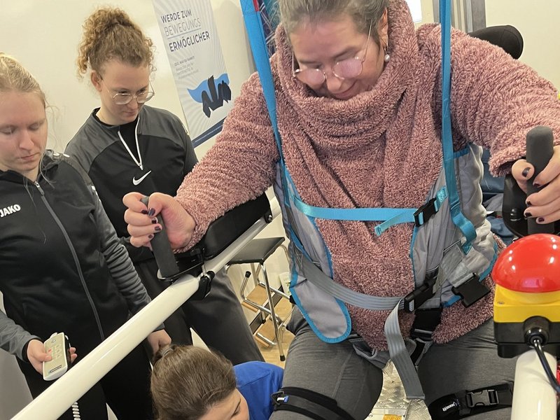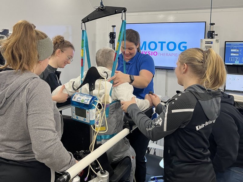 Das St. Josefshaus Rheine bekam Besuch von der Physiotherapie Motog. Was ist besonders an einem Besuch der Physiotherapie? Claudia Motog und ihr Lebensgefährte haben einen Anhänger konzipiert, in dem ein Laufband enthalten ist. Dieses Laufband ist ein medizinisches Laufband. Das Besondere ist, dass mit diesem Laufband nahezu jeder Mensch wieder laufen kann. Es gibt eine spezielle Vorrichtung, um die Menschen mit Einschränkungen zu sichern und gleichzeitig mit Hilfe wieder Laufbewegungen durchführen zu können - auch ggf. ohne Hilfe. Der Anhänger ist EU-weit der erste dieser Art. Zudem kann durch modernste Technik ein Laufprofil und eine Laufanalyse erstellt werden, um so das Laufen wieder zu trainieren oder individuelle Hilfsmittel anpassen zu können.