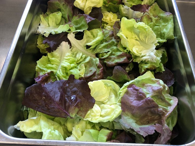 Neun Stück roter Kopfsalat hat unsere Garten-AT für ein leckeres Mittagessen aus der aktuellen Ernte beitragen dürfen.