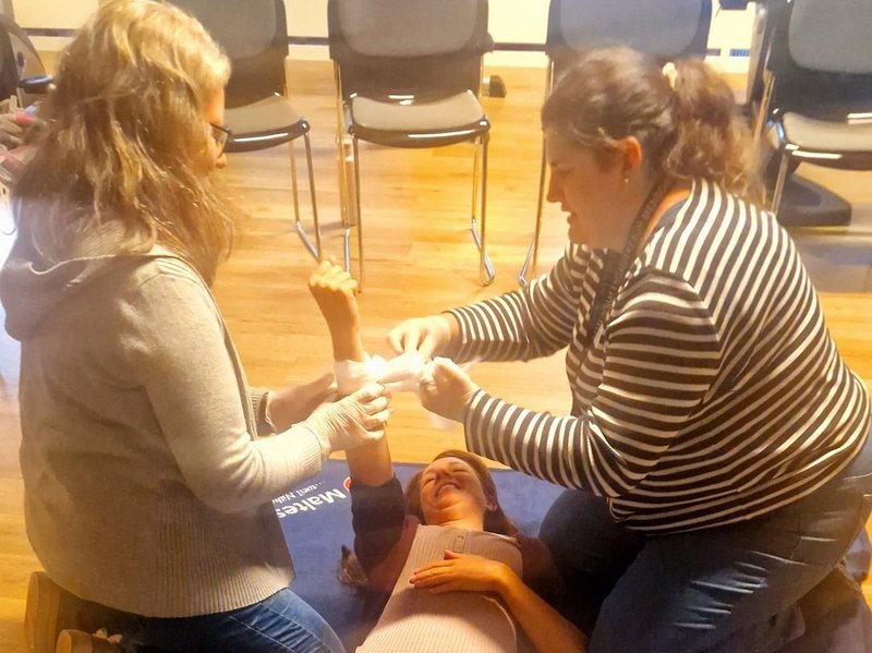 Heute fand neben der Naloxon- und Drogennotfallschulung für Bewohner/-innen auch der Ersthelfer-Kurs für Mitarbeitende durch den Malteser Hilfsdienst statt. Alle zwei Jahre dürfen Mitarbeitende sich in den neuesten Techniken, Methoden und Tricks unterweisen lassen. Dabei kommt die Teamentwicklung nicht zu kurz. Auch wenn die Schulungen durch die jährlichen Wiederholungen erstmal "langweilig" erscheinen - gelacht wurde viel! Danke an alle, die mitgemacht haben!