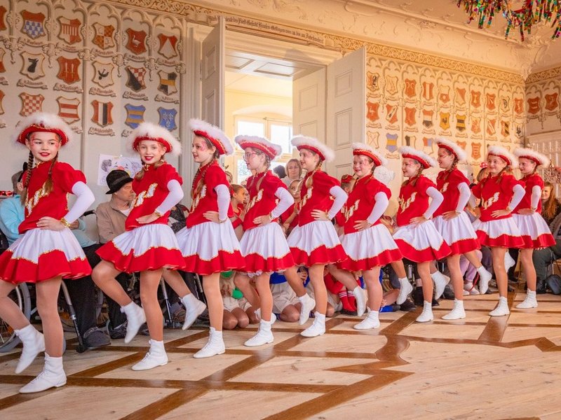 Ausgelassene Stimmung und strahlende Gesichter erfüllten den Wappensaal im Schloss Hochaltingen: Die Tanzgarde der SpVgg Herblingen/Hochaltingen brachte mit ihren Auftritten fröhliche Faschingslaune ins Pflegeheim Haus St. Marien.