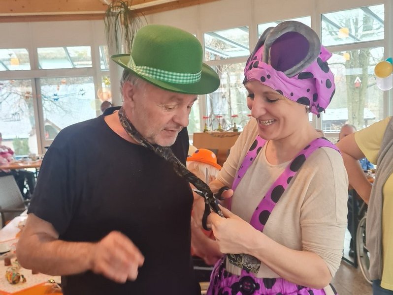 Wir haben in unserem Haus ausgiebig die Faschings-Zeit eröffnet: Direktor Peter Konrad und ein Bewohner der Einrichtung opferten ihre Krawatten. Es wurde getanzt, gelacht, geschunkelt und Bütten-Reden gehalten. Mit ihrer tollen Tanzeinlage erstaunte das Tanzmariechen der Garde „Narhalla Rot Weiß“ das Publikum und überreichte Ehren-Orden an die Leitungen des Hauses, Bewohnerinnen und Bewohner. Außerdem brachte Schäfer Heinrich mit seinen wilden Schafen alle sehr zum Lachen.