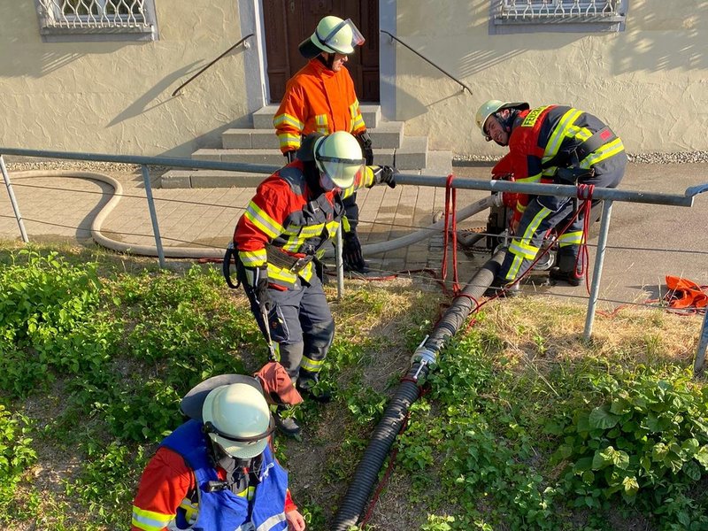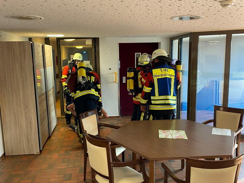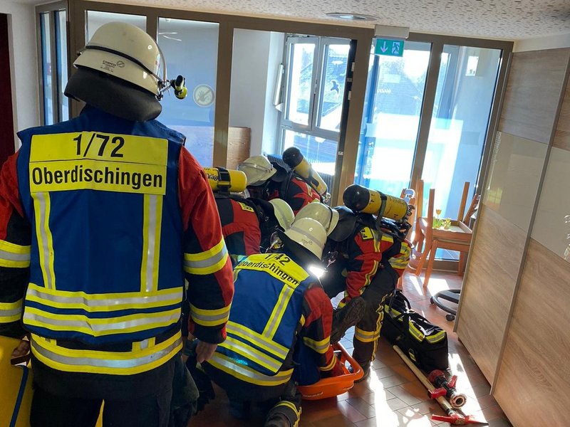 Es wurden drei Nachwuchsfeuerwehrleute unter realistischen Bedingungen aus dem Haus evakuiert, nachdem in einer Küchenzeile ein fiktiver Brand ausgebrochen war. Insgesamt waren 44 Feuerwehrleute im Einsatz, die Leitung hatte der Feuerwehrkommandant aus Oberdischingen, Christoph Schenk. Sechs Fahrzeuge waren im Einsatz.