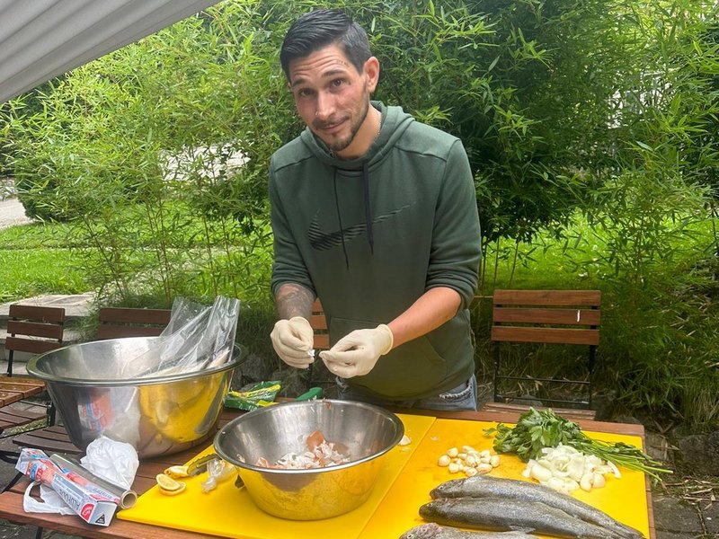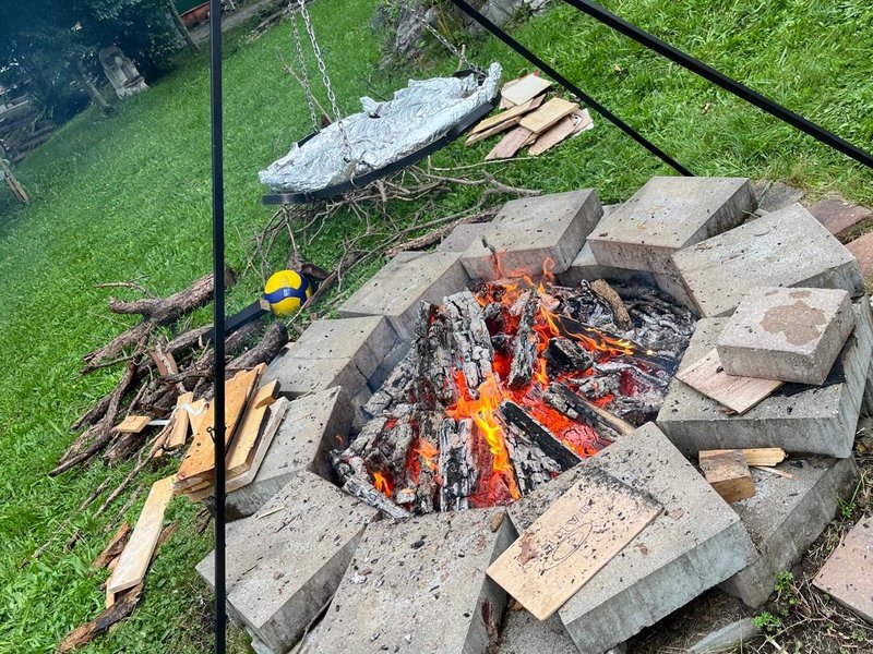 Die Rehabilitand/-innen haben einen gemeinsamen Nachmittag im Garten organisiert: Es wurde Feuer gemacht und gemeinsam Fisch gegrillt.