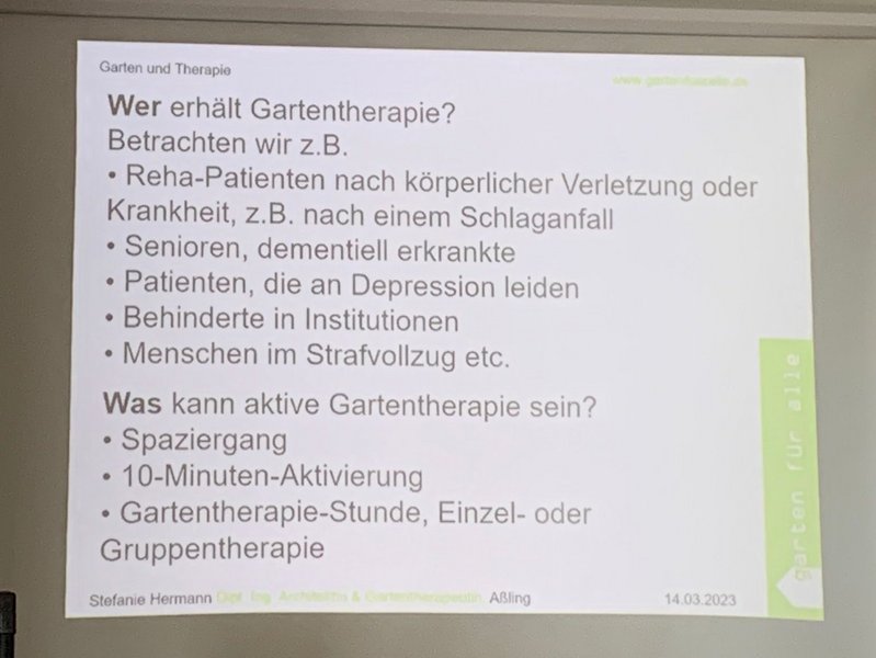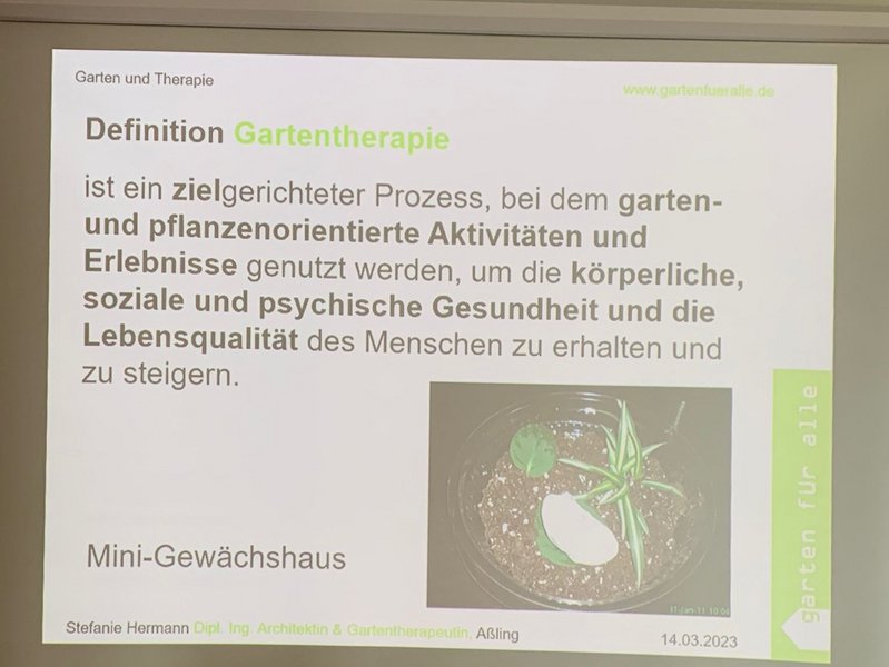 - Workshop „Ziele der Gartentherapie in unserer Einrichtung“