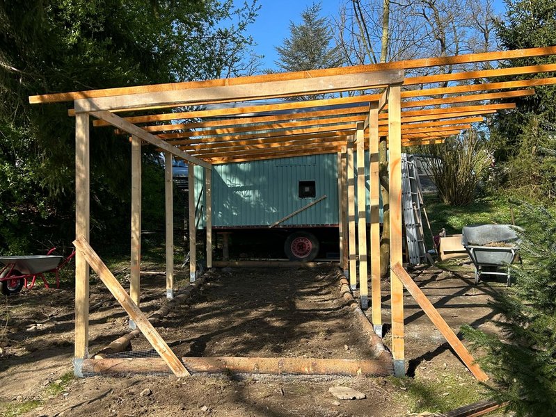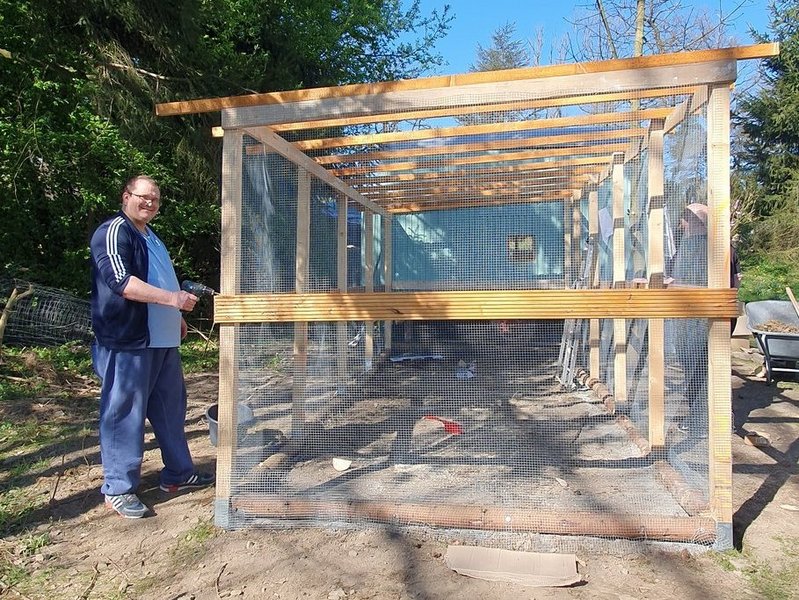 Der Ausbau des Kaninchen-Außengeheges nimmt langsam, aber sicher Form an und macht gute Fortschritte - bald können wir die kleinen Hoppelmänner fast schon in ihre neue Luxuswohnung einziehen lassen. Bino und Elli, die beiden Baustellen-Inspektoren, warten gespannt und haben den Fortschritt fest im Blick. Ganz schön professionell, die beiden.