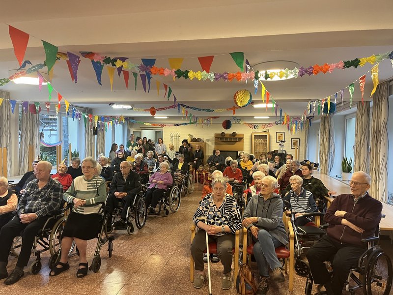 Schon beim Einzug der Gardetänzerinnen und des Kinder-Prinzenpaares war die Begeisterung groß. Viele Bewohnerinnen und Bewohner erinnerten sich an frühere Karnevalstage und schunkelten sofort begeistert mit. Die liebevoll gestalteten Kostüme, die schwungvollen Tänze und die herzlichen Worte der Tollitäten sorgten für zahlreiche strahlende Gesichter.