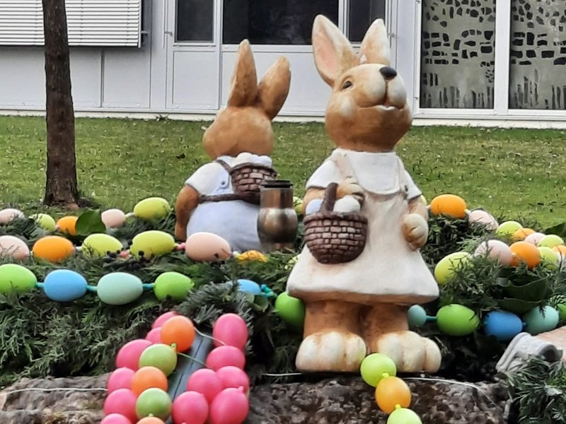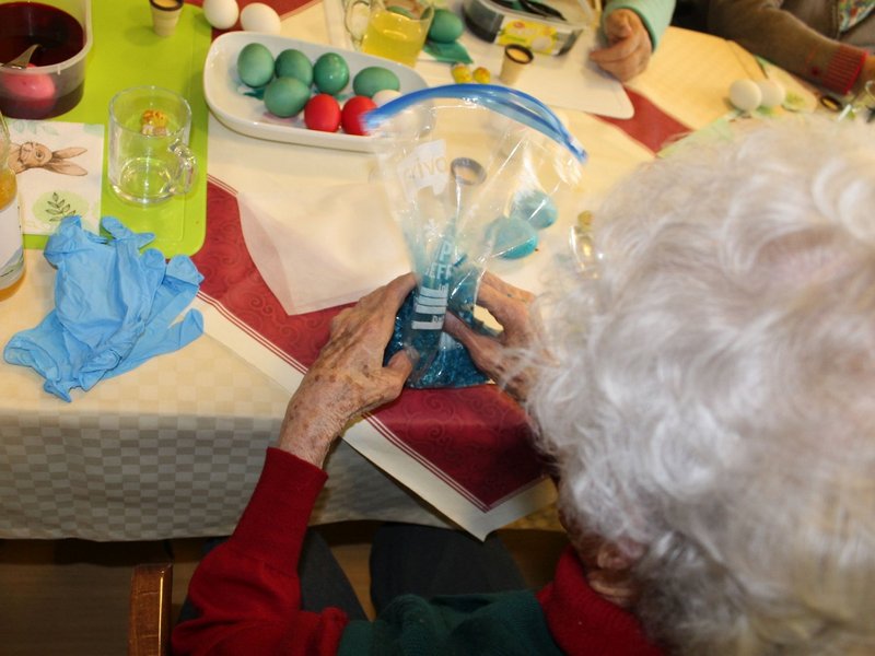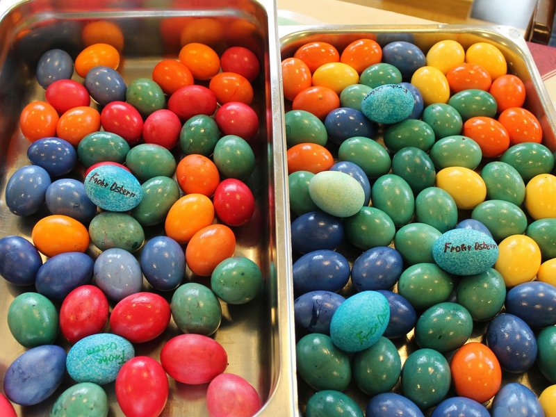 Die letzten Eier sind gefärbt, der neue, große Osterbrunnen im Park des Hauses St. Hildegard ist fast fertig geschmückt. Nun warten alle Bewohnerinnen und Bewohner, aber natürlich auch meine fleißigen Kolleginnen, auf den heutigen Nachmittag – dann findet nämlich die feierliche Einweihung des Brunnens mit dem obligatorischen Eierlikör statt. Dieser wurde heute früh schon ausgiebig auf Qualität geprüft.