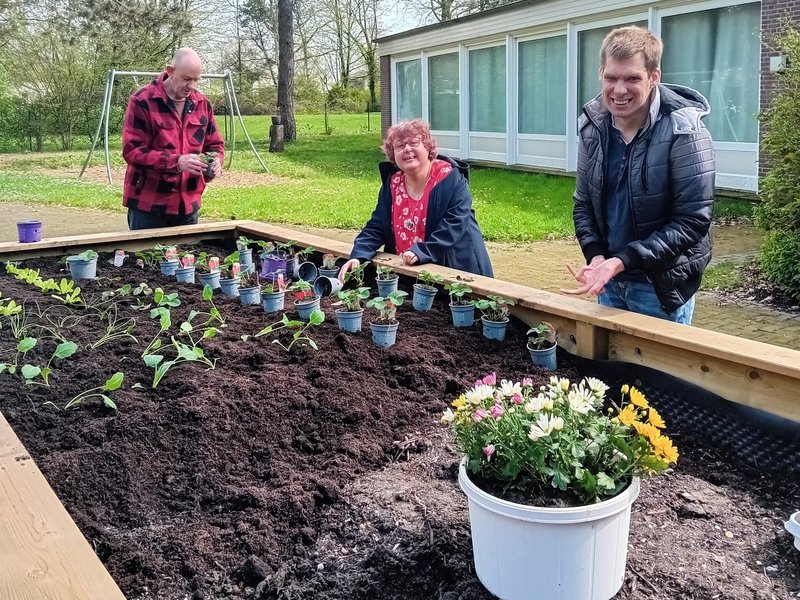 Drei fleißige Helfer/-innen haben das Hochbeet gemeinsam bepflanzt und hatten sehr viel Spaß dabei.