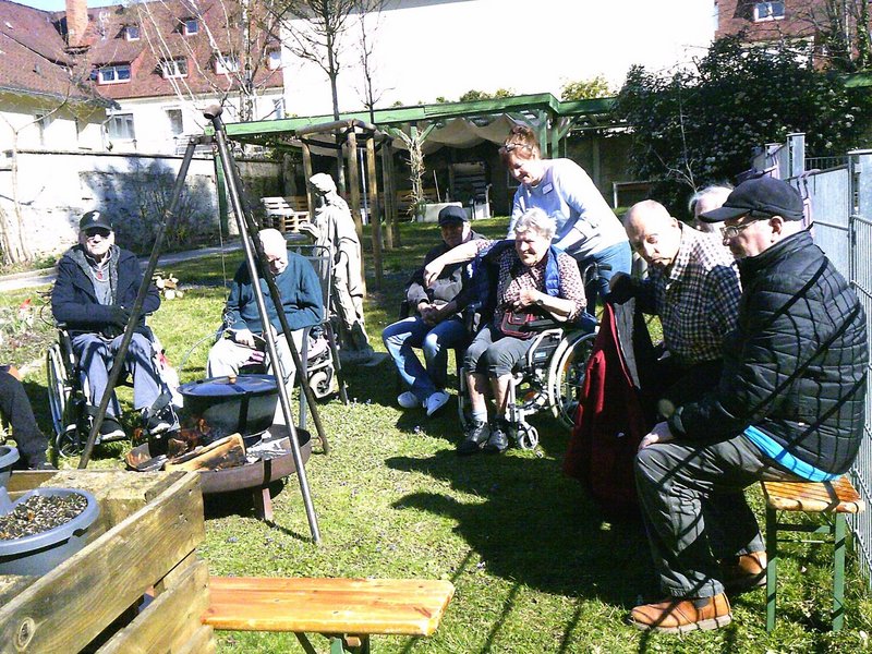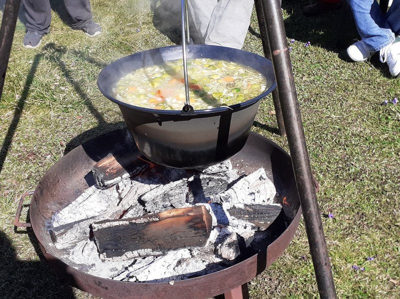 Pünktlich zum Start des Frühlings bereiteten die Bewohnerinnen und Bewohner des Katharinenstifts gemeinsam eine Frühlingssuppe über dem Feuer zu. Am frühen Morgen startete eine kleine Gruppe von Bewohnenden zum Einkaufen auf den Markt, um Gemüse zu besorgen. Im Garten wurde währenddessen in der Feuerschale das Feuer entzündet, über dem die Suppe gekocht werden sollte. Während viele unserer Frauen in der Küche beim Schnippeln halfen, sorgten unserer Männer dafür, dass das Feuer ordentlich brannte und für genügend Hitze sorgte. Beim gemeinsamen Essen der Suppe in der Frühlingssonne waren sich alle einig: Man kann mit den einfachsten Mitteln oftmals die besten Gerichte kochen.