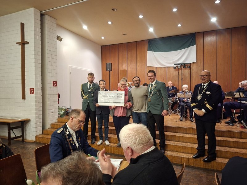 In diesem Jahr durften wir uns über die Umsetzung dieses Ziels freuen. Im Rahmen des Titularfestes der St. Seb. Schützenbruderschaft e. V. nahmen zwei Mitarbeitende vom Haus St. Josef einen Scheck über 1.000 Euro für „Unseren Laden“ entgegen. Die Spende blieb bewusst in der Gemeinde und kam direkt den Menschen vor Ort zugute.