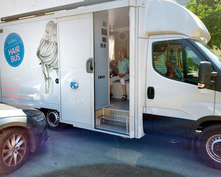 Die mobile Frisörin "Dana" stattet uns regelmäßig mit ihrem Hairbus einen Besuch ab und bietet Haarschnitte für Männer und Frauen zu besonders günstigen Preisen an: Das ist wirklich ein toller Service!
