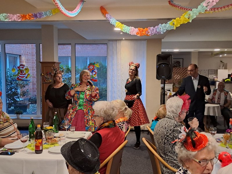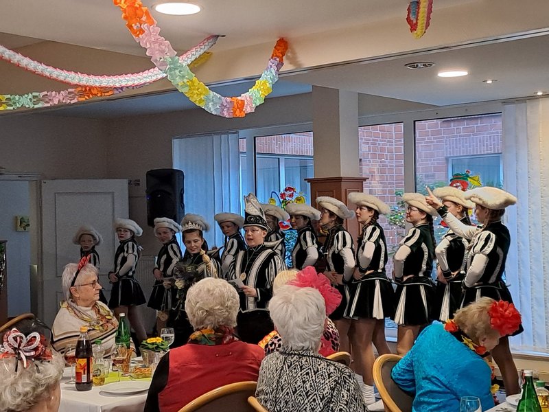 Tolle Stimmung bei Seniorinnen, Senioren und den Mitarbeitenden im Betreuten Wohnen. Edmund der I. hielt eine Büttenrede, die Kevelaerer Sängerin Monika Voss sorgte mit den Liedern für viel Freude, genauso wie der Besuch des Kinderprinzenpaares Prinz Moritz I. und Prinzessin Eva-Sophie III. mit der Kindergarde. Das Kinderprinzenpaar verlieh Karnevalsorden an Direktorin Christiane Hüls, Tanja Thissen, Herrn Wittenschläger für seinen Einsatz am Klavier sowie an Bewohnerin Frau Görtz, die als längste Bewohnerin seit 20 Jahren in Wohnstift wohnt.