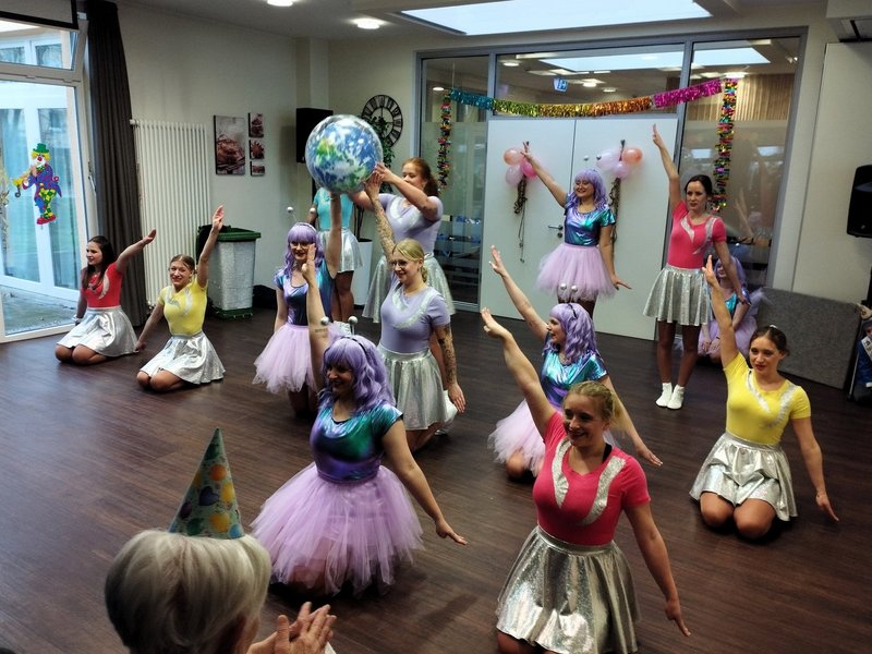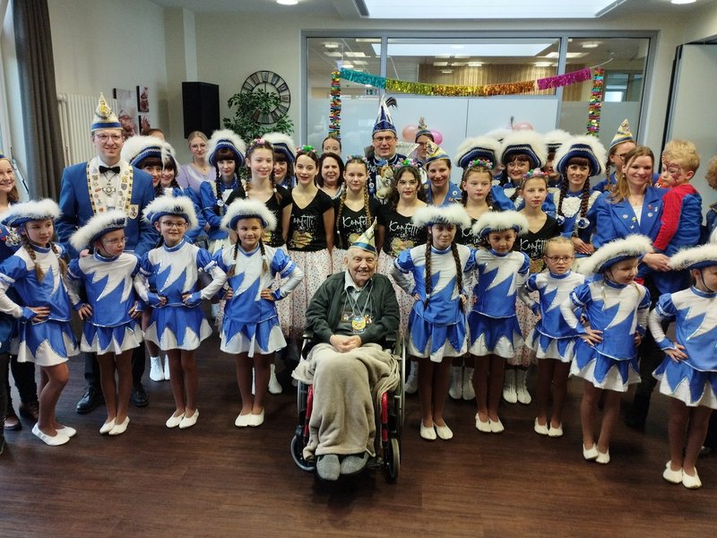Die KG Blau-Weiß Neheim bot uns ein buntes Programm mit Gardetanz, Prinzenpaaren und Showtanz. Die älteste Bewohnerin und der älteste Bewohner wurden mit einem Orden vom Prinzenpaar geehrt. Gemeinsam wurde gesungen und geschunkelt. Die KG besucht uns schon seit über 25 Jahren. Es ist immer wieder ein Highlight der Session und ein Garant des Frohsinns!