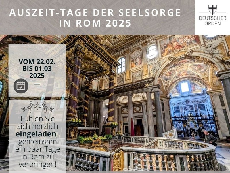 Vom 22. Februar bis 1. März 2025 möchte ich Sie ganz herzlich einladen, gemeinschaftlich ein paar Auszeit-Tage in Rom zu verbringen.