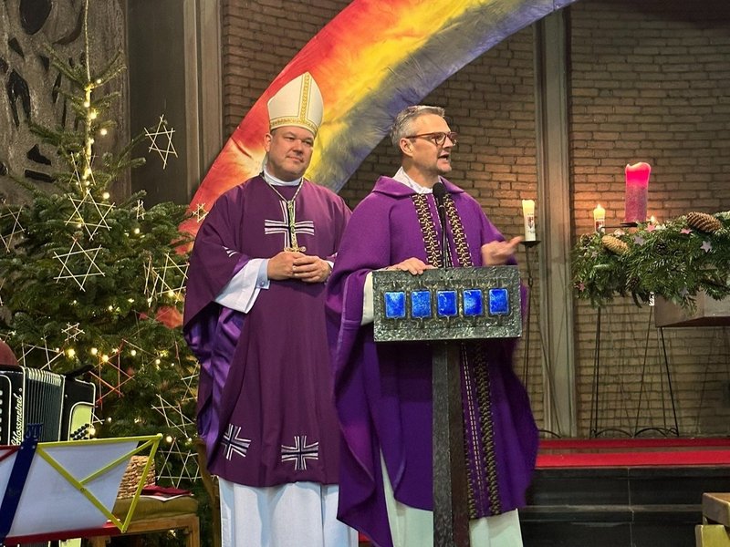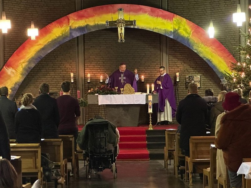 Frank Bayard OT, Hochmeister des Deutschen Ordens, besuchte gemeinsam mit Pater Jörg Eickelpasch, Leiter der Seelsorge in den Ordenswerken, das Haus St. Josef am Tag der Weihnachtsfeier. Die Freude war groß und die hauseigene Kapelle sehr gut gefüllt, als der Hochmeister dort mit Pater Jörg die Heilige Messe hielt.