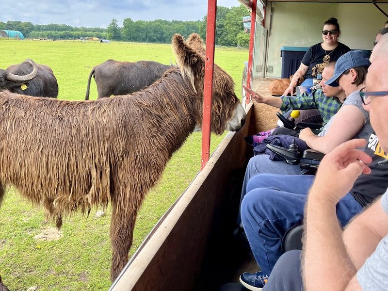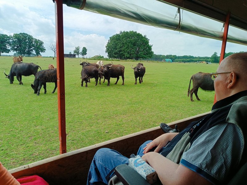 Am dritten Tag konnte die atemberaubende Landschaft der Lüneburger Heide bestaunt werden: Bei gutem Wetter ging es für die Bewohner/-innen zu einem Baumwipfelpfad. Über einen rollstuhlgerechten Weg über den Bäumen gelangten sie an die Aussichtsplattform, die sogar den Blick bis zum Hamburger Hafen bot. Im nahe gelegenen Wildpark gab es dann Tiger und Waschbären zu sehen. Nach einer kleinen Stärkung ging es zurück in das Heidehotel. Nach einer kleinen Erholungspause schauten sich am Abend alle gemeinsam das Deutschlandspiel an.
