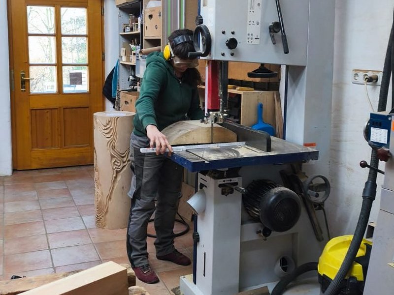 Die Künstlerin bietet auch Holzschnitzkurse an.