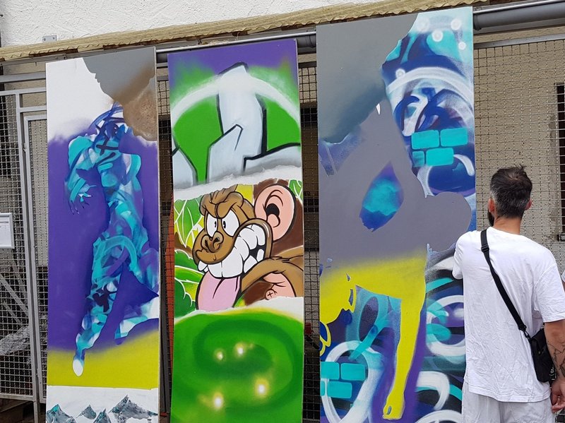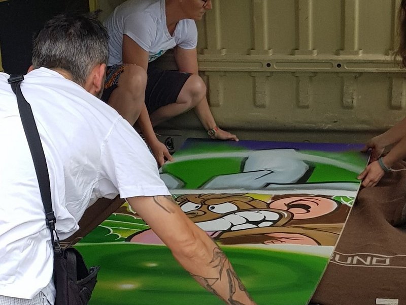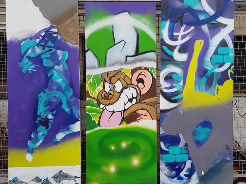 Wir produzieren großflächige Kunst und im Gegenzug erhalten wir Kletterkurse für unsere Bewohner/-innen.