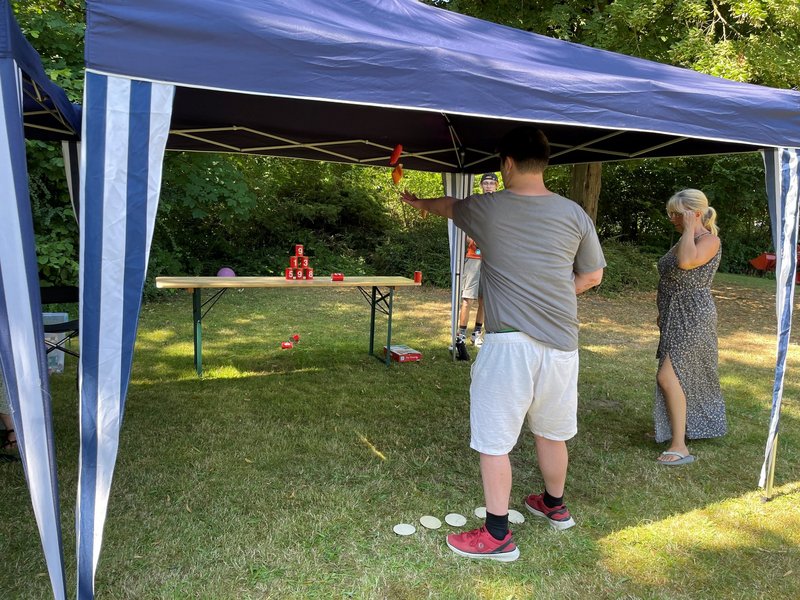 Da das Zirkuszelt zunächst noch vom Baumamt freigegeben werden musste, begann der Tag mit unserem bunten Rahmenprogramm: Beim Dosenwerfen, Entenangeln, bei Gesellschaftsspielen und mit Wasserpistolen konnten sich alle spielerisch austoben und die erste Nervosität abbauen.