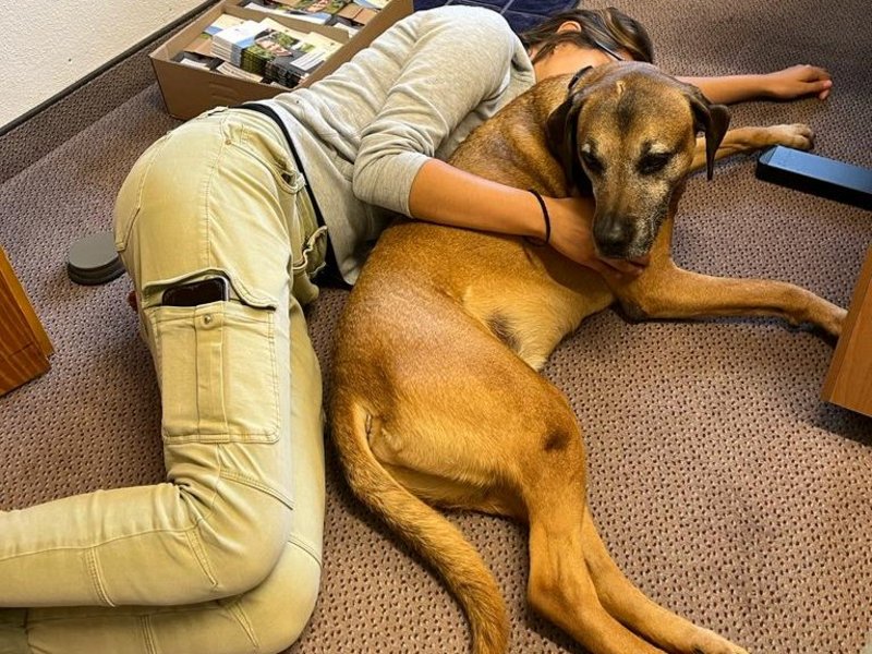 Das Foto zeigt eine Kuscheleinheit mit einer unserer Mitarbeiterinnen.