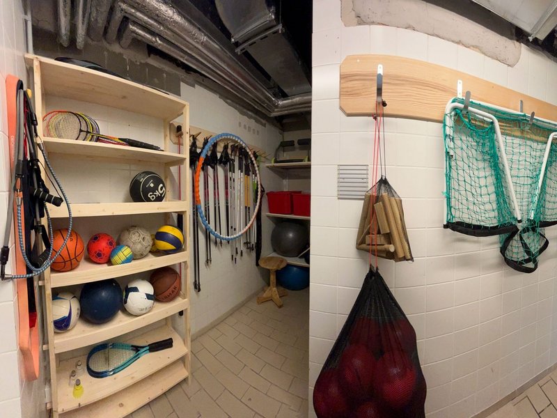 Gala Woytinnek, Arbeitsanleiterin für den Bereich Schreinerei, hat mit ihrem AT-Team hochwertige Regalsysteme und Garderoben für unseren Sport- und Fitnessraum entworfen und gebaut.