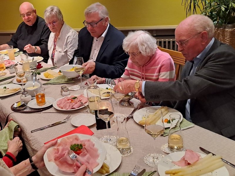 Die jährliche Maiandacht ist inzwischen Tradition: In der Kerzenkapelle am Kapellenplatz, die in diesem Jahr ihr 375-jähriges Jubiläum feiert, ging es zur Gnadenkapelle mit dem seit 1642 verehrten Marienbild. Anschließend gab es für die Bewohnerinnen und Bewohner sowie Mitarbeitenden das beliebte Spargelessen im „Goldenen Schwan“, in dem seit einigen Jahren eingekehrt wird.