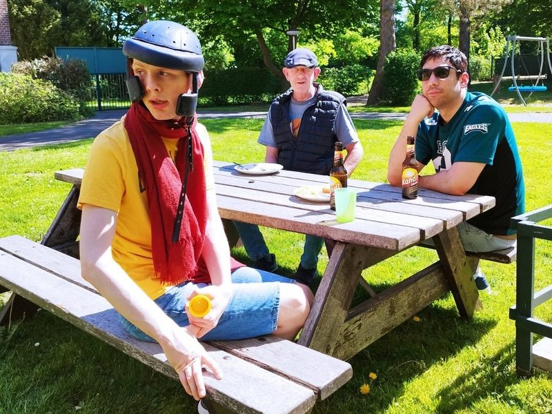 Am 1. Mai hatten wir eine richtig schöne Feier! Etwa 25 Bewohnerinnen und Bewohner waren dabei. Auch einige Betreuerinnen und Betreuer haben mitgefeiert. Das Wetter war super: viel Sonne, blauer Himmel und sommerlich warm.