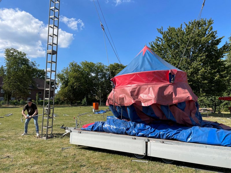 Mit großer Freude und Teamgeist starteten wir in unsere Zirkuswoche! Am Sonntag wurde das Zirkuszelt aufgebaut – eine echte Gemeinschaftsaktion bei sommerlicher Hitze. 32 engagierte Menschen, darunter Mitarbeitende und ehrenamtliche Helfende, haben mit angepackt und das Zelt in fünf intensiven Stunden aufgestellt.